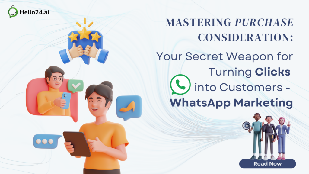 To truly revolutionize your approach and see these strategies in action, consider taking the next step. Book a demo with the ecommerce experts at Hello24.ai and witness how our cutting-edge WhatsApp marketing automation software can transform your purchase consideration process. Our team will walk you through live examples of how automation can streamline your marketing efforts, enhance customer engagement, and ultimately drive conversions.